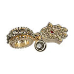 Decorado con un zafiro que simboliza lealtad y sabiduría.